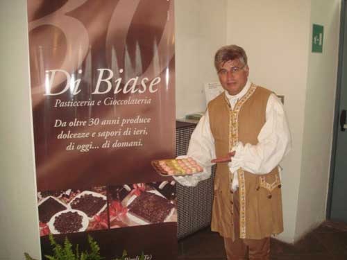 Ora, Gianni Di Biase, il protagonista di questa storia (foto del titolo; ndr), non ha l’aria del principe. Non perché nel suo settore non lo sia, ma perché è uno che lo immagini sempre con le mani in pasta. Ops, meglio dire, nel cioccolato (foto 1 sotto). O nella torta, al massimo. Lo vedi come un’artista, ma di quelli che preferiscono sgobbare nei loro studi, per lui la cucina. Ancor di più lo vedi come un artigiano. Come quelli del passato, delle botteghe con una luce fioca, i vetri appannati e la notte buia fuori. Uno che studia con passione, ricerca. Quando parla, lo capisci subito che lui è così. Ogni risposta è un viaggio, si esce dalla domanda e vagabonda tra segreti, storie, detti popolari, gusti di re e regine.