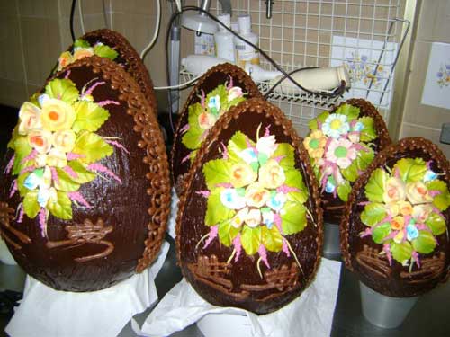 Di Biase no. Lui ha studiato, ricercato, provato. Ha continuato a sfornare torte, paste e croissant ma un bel giorno ha fatto capolino nei concorsi. Ha iniziato a sbizzarrirsi e a vincere. Anzi, al primo concorso, nel castello di Mango, ha stravinto portandosi a casa tre premi, presentando tre panettoni decisamente particolari. Tutti lo guardavano: “Ariva da Riuli” (“Arriva da Rivoli”; ndr). Nessuno lo conosceva ancora. E per la serie viene prima l’uovo o la gallina, per lui dall’uovo. Di Pasqua (foto 3). Inizia con la decorazione di questi simboli pasquali. Si sbizzarrisce, li riempie di fiori che gli ricordano la sua Puglia, i giardini dove scorrazzava da bambino. Inizia a fare arte.