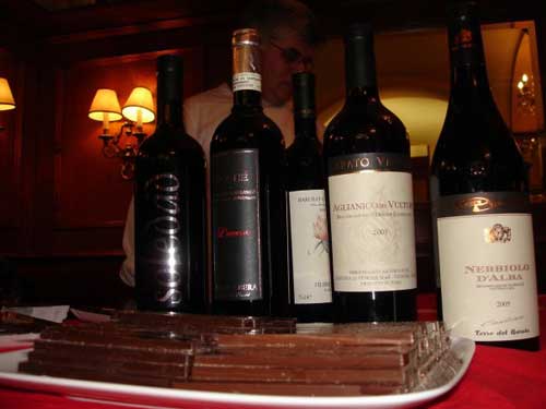 Finito il pranzo, un altro assaggio: “Per cogliere altre caratteristiche, quando la lingua ha già sentito vari gusti”. E così in avanti, non per bere pintoni o ubriacarsi, ma per lasciare galoppare i sensi. Per carpirne i segreti. A seconda degli zuccheri e sapori bisogna combinare la massa cacao nella giusta percentuale. Alla fine, ne nasce un cioccolatino ripieno non di vino, ma di crema di vino. Cosa molto diversa, molto più delicata e meno impattante. Dentro non c’è il liquore: c’è una crema soffice che t’accarezza la lingua, la ricopre. Poi lascia intravedere il vino. I suoi profumi, la sua anima. Il contrasto. Una cosa dolce e una amara.