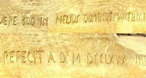 Clicca per Ingrandire Piazza Fioritto, all'interno dell'ex Palazzo dei della Torre, esiste la seguente iscrizione: “AERE SUO IN MELIUS DOMINUS MARTUCCI REFECIT A.D. M D CCLXXX VIII” (foto del titolo; ndr). In italiano significa: “Il signor Martucci rifece in meglio col proprio danaro. Anno del Signore 1788”. In base alle notizie forniteci dall'attuale proprietario Enzo Fasanella, il palazzo nacque come convento benedettino nel XIII secolo. Fino alla data dell'iscrizione, che ne assegna la proprietà ai Martucci, non si hanno più notizie certe.