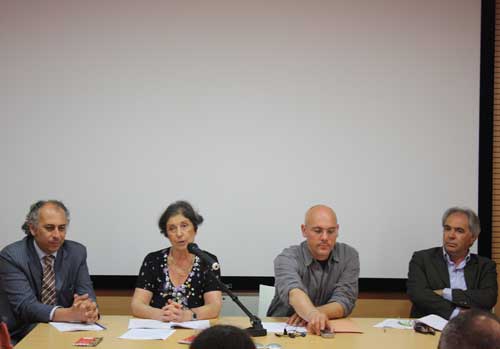 Presentato questa mattina a Bari il calendario dei festivals della provincia di Foggia aderenti al Consorzio Five Festival Sud System. Hanno partecipato Silvia Godelli, assessore al Mediterraneo, Cultura e Turismo della Regione Puglia (foto 1 sotto; ndr); Nicola Vascello, commissario Apt di Foggia (foto 2, primo a sx); Mario Simonelli, sindaco di Orsara di Puglia (foto 3, primo a dx) e tutti i membri del Consorzio 5FSS: Franco Salcuni (FestambienteSud e Teatro Civile Festival – foto 1-2-3), Luciano Castelluccia (Carpino Folk Festival), Lucio Ferrara (Orsara Musica Jazz Festival), Antonio Potenza (Suonincava) e Gianna Fratta (Festival d’arte Apuliae).