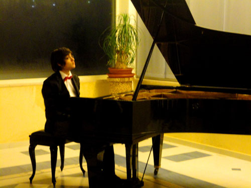 Anche perché nonostante l’età, da piccolo Mozart qual è, ha dimostrato da subito la sua piena padronanza della tastiera, rivelando il possesso di una tecnica davvero sbalorditiva. Richiamato più volte sul palco dai numerosi applausi, Pietro ha eseguito come bis una strepitosa e impeccabile “Suggestione diabolica” di S. Prokofiev. Non per niente, a conclusione della manifestazione, attorno a lui si sono schierati in molti per complimentarsi: studenti, appassionati e strumentisti di prim’ordine. Tra l’altro, validissimi pianisti come la Ucraina Anna Kravtchenko vincitrice del prestigioso concorso internazionale “Ferruccio Busoni” nel 1992, del nostro Antonio Di Dedda, ultimo vincitore del Premio Venezia 2009, premio riservato al miglior diplomato in pianoforte d’Italia e Domenico Monaco anche lui eccellente pianista.