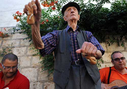 C. - Le nacchere sono uno strumento che si è sempre suonato. Io non saprei cantare senza le nacchere, perché quelle danno il tono al canto. Però la musica non me l’ha insegnata nessuno. Io sono un cantore con nacchere ed è l’uso che mi ha insegnato a suonarle; so anche fare qualcosa con la chitarra battente, però non sono bravo.