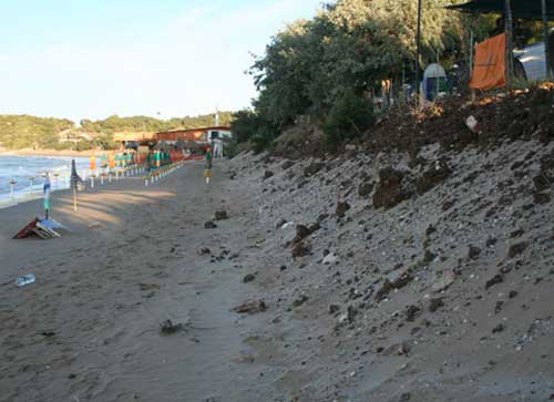 Clicca per Ingrandire Qualche giorno fa, una mareggiata ha sconvolto le coste del Gargano e come sempre il mare è stato ritenuto il gran colpevole, meglio: il capro espiatorio. Nel tentativo di ristabilire la verità, ho documentato fotograficamente le spiagge del Gargano da Lido del Sole a Pugnochiuso (http://www.facebook.com/album.php?aid=156363&id=1561731656&l=d260b48b76). Questa volta l'intento non è quello di evidenziare le bellezze naturali e paesaggistiche del Gargano, ma di indicarne i punti critici, al fine di tutelare e salvaguardare la nostra bellissima costa, le nostre spendide spiagge, troppo spesso preda di nuovi "vandali" che le aggrediscono e le deturpano, assoggettandole a interessi economici deprecabili col silenzio-assenso di Amministrazioni pubbliche silenti.