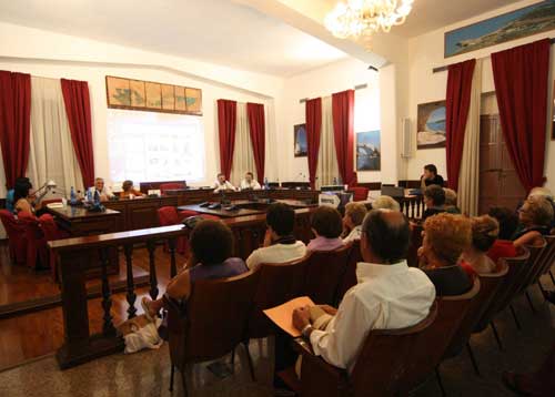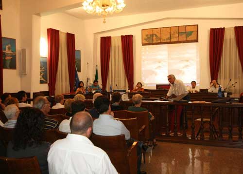 Clicca per Ingrandire Giovedì 22 luglio, nella Sala Consiliare del Comune di Peschici, si è tenuta la presentazione del libro “Venti di grecale - Peschici Anni ’40”. Sono intervenuti: Menuccia Fontana di Italia Nostra-Gargano (relatrice), l’assessore comunale alla Cultura Leonardo Di Miscia, l’autore Paolo Labombarda, Piero Giannini di new Punto di stella (moderatore), con la collaborazione di Camilla Tavaglione (voce narrante), Rocco Tavaglione (musico) e Davide Maggiano (tecnico delle luci e delle immagini). La manifestazione, la cui regia è stata curata da Piero Giannini, si è articolata in diversi momenti.