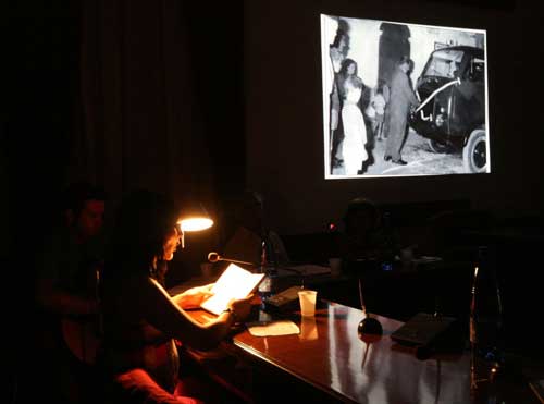 In un clima di assoluta partecipazione e silenzio, accompagnata dalla proiezione di foto datate e dalla musica della chitarra di Rocco Tavaglione, la voce di Camilla Tavaglione ha cercato, con la lettura di alcuni passi del romanzo, di restituire per un attimo al presente le immagini, i sentimenti, gli odori, le emozioni della vita di una volta, ricomponendone le figure, le loro storie tessute di una eccezionale quotidianità.