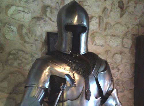 Di quest’ultimo vi sono varie tipologie che lo rappresentano vestito di tutto punto con una pesantissima armatura metallica, armato ed equipaggiato dalla testa ai piedi, senza neanche un centimetro scoperto, per resistere ai combattimenti a cavallo e ai combattimenti corpo a corpo.