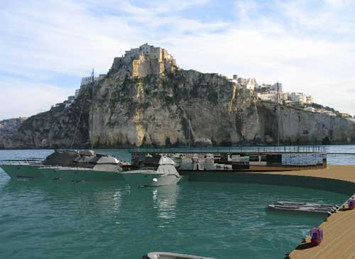 • prima fra tutte l’uso della barriera frangiflutti lungo l’intero perimetro esterno del porto, a una distanza di circa 20 metri, per impedire l’azione delle onde e avere una zona di “calma relativa” nello specchio d’acqua subito adiacente. In questa maniera si evita la realizzazione di grossi muraglioni di forte impatto paesaggistico;