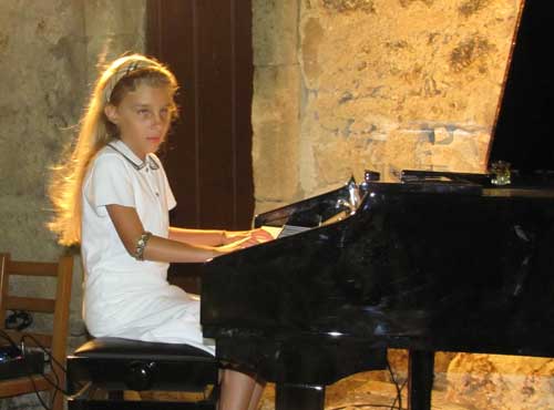 I pezzi suonati sono stati diversi: scherzi e ballate eseguiti dai più piccoli, come Irene Giarrusso (foto 1 sotto) e Laura Guerra (foto 2), brani a 4 mani - “Sorrisi infantili” di Ettore Pozzoli e “La Fattoria Della Musica” di Elena Zuccotto - eseguiti rispettivamente da Claudia Afferrante-Antonio De Nittis (foto 3), Alessia Verderame-Carlotta Verderame (foto 4) e Alfio Mongelluzzi-Domiziana Mongelluzzi (foto 5), fino a esecuzioni più impegnative di autori come Beethoven, Chopin e Giovanni Allevi, magistralmente interpretati da Antonio De Nittis (foto 6-7, mentre accompagna Alessia Verderame e Valentina De Nittis.