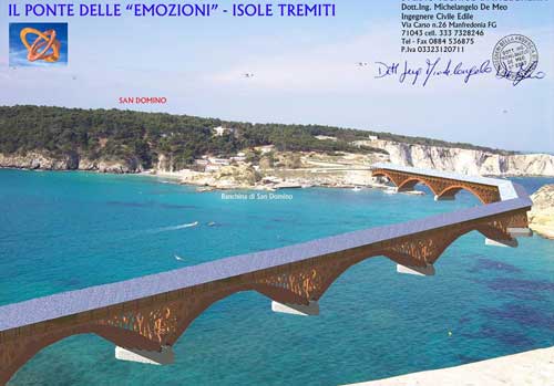 L’ing. civile edile Michelangelo De Meo (foto sotto), di Manfredonia, storico delle Isole Tremiti, ci riprova. Mesi fa ha reso pubblico il suo progetto di un “Ponte delle Emozioni” in grado di collegare le tre isole maggiori (San Domino, Cretaccio, San Nicola - vedi foto del titolo), già esistente alcuni secoli fa secondo i risultati di lunghe e laboriose ricerche storiche che lo hanno portato a scoprire un carteggio inedito e alcuni dei pali di fondazione presenti sul fondale marino tremitese. Ora lancia un sondaggio sul suo ripristino allo scopo di conoscere il gradimento o meno da parte degli internauti relativo a questa idea. “COSA NE PENSATE DI RIPRISTINARE IL VECCHIO PONTE IN LEGNO ALLE ISOLE TREMITI PER RILANCIARE IL TURISMO SUL GARGANO?” Si può rispondere alla domanda utilizzando “INVIA POSTA” che trovate in alto sulla homepage. “Realizzato nel periodo borbonico per circa 400 detenuti, quando le isole erano destinate a colonia penale, fu smontato perché i detenuti non facevano la regolare manutenzione e perché la situazione politica e militare non era delle più felici” afferma lo storico. “Già all’epoca era fra i ponti in legno più lunghi del mondo, quasi 500 metri” continua. E aggiunge: ”Oggi, per attirare il turismo internazionale sul Gargano, non bastano più le coste e un mare cristallino, serve qualcosa che altre località non hanno, un simbolo unico a livello mondiale”. E qui porta degli esempi: la parigina Torre Eifell, Ponte Vecchio e Colosseo a Firenze e Roma, e via elencando, “opere – conclude - che hanno reso famosi, in tutto il mondo, quei territori attirando il turismo internazionale”.