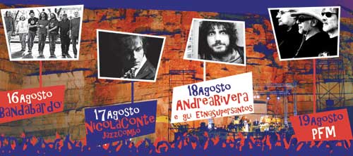 Apertura il 16 agosto con la Bandabardò (ingresso 8 euro). Coi suoi oltre mille concerti e quindici anni di attività, la Bandabardò può chiamarsi a buon diritto una delle live band più vitali in Italia. I loro concerti sono feste straripanti d’affetto: il pubblico vi partecipa numerosissimo, cantando infaticabile ogni canzone, duettando continuamente con gli artisti sul palco, senza perdersi un solo verso, in uno scambio d’intesa che non smette mai di sorprendere la Banda stessa.