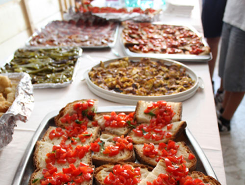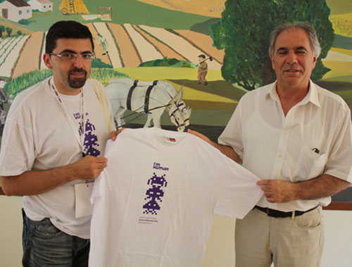Clicca per Ingrandire Una giornata di festa per dare continuità, con una nuova iniziativa, al gemellaggio fra Irpinia e Monti Dauni. Domenica 22 agosto, i capidelegazione di ‘Folkintour’ hanno consegnato al sindaco orsarese Mario Simonelli la maglia ufficiale dell’Ariano Folkfestival (foto del titolo; ndr). Dalla vicina provincia di Avellino, a bordo di diversi fuoristrada, un gruppo di settanta persone è giunto a Orsara di Puglia trascorrendovi la giornata fra visite guidate, proiezioni e degustazioni. Dopo l’arrivo al Centro Culturale Comunale, la comitiva è stata condotta dalle guide locali alla scoperta del complesso abbaziale (foto 1 sotto), all’interno della Grotta di San Michele e poi lungo vie e piazze storiche del paese. Qualche ora più tardi, la proiezione del film di “Terra Madre” e il pranzo buffet con le pietanze tipiche di Orsara (foto 2).
