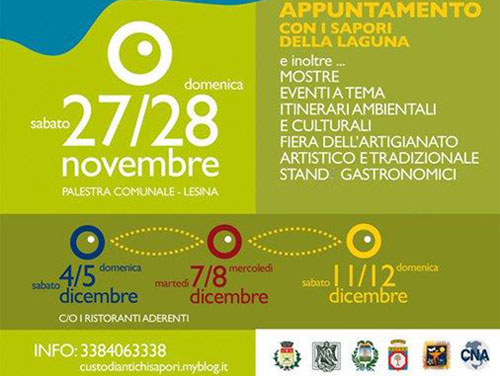 Novità dell’edizione 2010: l’evento gastronomico dell’anno si fa in quattro. Si replica infatti sabato 4 e domenica 5, martedì 7 e mercoledì 8 dicembre, e infine sabato 11 e domenica 12 dicembre nei ristoranti del circuito, dove sarà riproposto il menù lagunare a prezzo concordato. E inoltre: mostre, eventi, convegni e workshop, itinerari culturali e ambientali, e la “Bottega del Parco”, Fiera dell’artigianato artistico e tradizionale del Parco Nazionale del Gargano. Anche quest’anno, i pescatori si sfideranno nel suggestivo palio dei sandali con voga tradizionale (le imbarcazioni utilizzate per la pesca nel lago), e nei week-end successivi sono previsti trofei di Kitesurf e Windsurf.