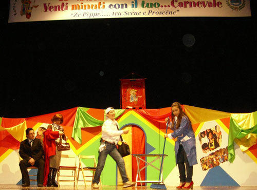 Clicca per Ingrandire CARNEVALE = Nelle scuole sono iniziate le prove per i “20 minuti con il tuo Carnevale” (foto del titolo, archivio; ndr), la storica rassegna teatrale di cui sono protagonisti assoluti gli alunni e gli studenti di Manfredonia. Il Comitato organizzatore della 58ª edizione del Carnevale Dauno di Manfredonia ha invitato le scuole cittadine di ogni ordine e grado a prendere parte alla rassegna teatrale “20 minuti con il tuo Carnevale” in programma dal 2 al 4 marzo. Le trame, liberamente ideate dai docenti e ispirate a vicende e situazioni inerenti il Carnevale ma che quest’anno potranno anche ricordare la celebrazione del 150° dell’Unità d’Italia, saranno interpretate da bambini e ragazzi delle scuole cittadine di ogni ordine e grado (foto 1 sotto, archivio). La manifestazione, che vede ogni anno la partecipazione di diversi istituti, dalle materne alle superiori, offre l’opportunità ai giovani di dare libero sfogo a fantasia e creatività in chiave carnascialesca, col duplice obiettivo di infondere e divulgare cultura e tradizioni, in particolare quelle locali.