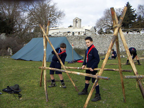 Per chi non ha mai visto né partecipato all'allestimento di un campo, ed è curioso di capire e vedere, consigliamo la visione delle foto sul sito agescimonte.it per avere la risposta che in tanti si pongono: come fanno ad allestire un campo? Molti sono convinti che i capi si occupino dell'allestimento, perché risulta molto strano che ragazzi e ragazze in età compresa fra 11 e 15 anni si costruiscano da soli la propria tenda (foto 1-2 sotto; ndr) dove dormiranno per tutto il campo, il tavolo con seduta dove mangeranno, la cucina dove accenderanno il fuoco per cucinare, nel massimo rispetto dell'ambiente che li circonda.