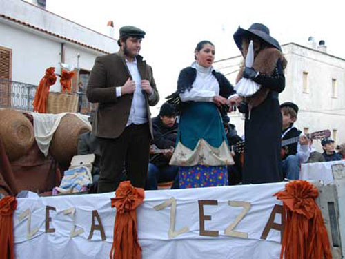 La "Zeza Zeza", di origine settecentesca napoletana, era una sorta di sceneggiata accompagnata da musica, danza e canto, recitata per le strade gli ultimi giorni di Carnevale. Mentre a Foggia se ne ha notizia fino a un cinquantennio fa, ancora oggi viene rappresentata a Solofra e in alcuni paesi dell’Irpinia. Teresa Maria Rauzino, altra relatrice, ha raccontato le tradizioni perdute del carnevale pugliese, soffermandosi proprio sulla "Zeza" peschiciana, (riesumata da un paio d’anni dagli studenti del Liceo Fazzini di Peschici), e analizzando i quattro personaggi principali: la Madre Zeza, il Padre, Vicinziella la figlia e il pretendente don Nicola.
