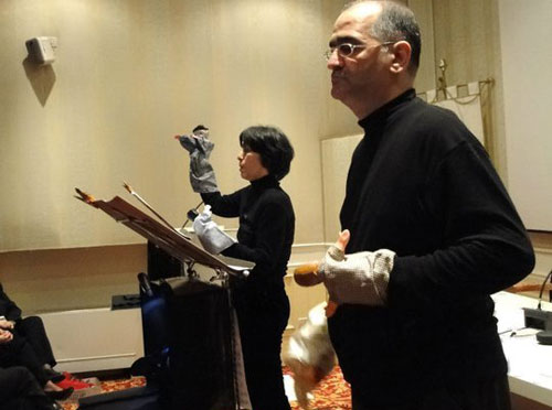 Mario Ficarelli, Gran Maestro della Ristorazione, ha poi descritto dolci e piatti tipici del Carnevale dauno, ricordando che proprio la crapula è una delle caratteristiche della licenziosità carnascialesca. Una suggestiva interpretazione della "zeza" in dialetto “terrazzano”, recitata da Gina Morelli e Vito Di Leo del Gruppo Teatrale "Le Maschere", ha concluso la serata. Molto partecipe il pubblico che ha affollato la "Sala del Vento": la rievocazione di usanze e costumi perduti ha incuriosito molto gli studiosi presenti (foto 3-4-5, relatori e attori)