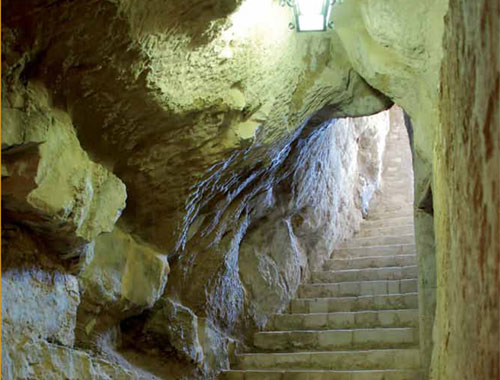 L’Abazia, detta anche “dell’Annunziata”, è la prima storica costruzione che appare alla vista di chi raggiunge il paese. Il complesso, immerso nel verde, comprende anche la Chiesa di San Pellegrino. L’elemento più importante e suggestivo del sito è costituito proprio dalla Grotta di San Michele, chiesa scavata nella roccia presumibilmente nel 200 dopo Cristo (foto 1 sotto). Il tempio di pietra sorge all’interno di un anfratto naturale, uno tra i luoghi di culto più importanti e antichi del Mezzogiorno d’Italia.