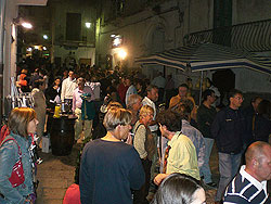 A un tratto, come a un segnale convenuto ma mai lanciato, si sono accesi i fornelli e allora… via con la frittura mista. In ciascuno dei vari punti-ristoro disseminati fra piazzette, vicoli e strade non ci volevano più di 2-3 persone per allestire un bel piattino di pesce di paranza indorato al punto giusto con olio vergine d’oliva esclusivamente locale. Piattino (si fa per dire) che passava nelle mani del primo “cliente” a portata di mano per essere liberi di servire il secondo già pronto con l’acquolina in bocca, nel rispetto totale delle norme igienico-sanitarie. E senza versare un centesimo, solo un salvadanaio che occhieggiava in un angolo attirando l’attenzione degli utenti verso suggerimenti di beneficenza.