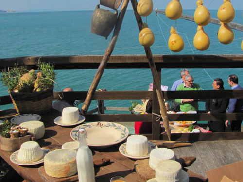 La vita nella masseria è scandita da antichi rituali che si perpetuano da secoli. Come quello della mungitura e della preparazione del caciocavallo tipico. Una preparazione che ha bisogno di gesti sapienti tramandati di generazione in generazione. Dalla masseria, attraverso un volo in elicottero che permetterà di godere della bellezza di questo territorio e della sua costa, ci si sposterà verso la zona lagunare del Promontorio. Qui ancora oggi si pratica la pesca dell'anguilla, antica tradizione tramandata nel paesaggio sospeso della Sacca Orientale del lago di Lesina. Sarà l'occasione per conoscere questa pesca, rivivere le suggestioni del paesaggio lacustre e riflettere sulla sua importanza ecologica di punto di nidificazione e passaggio per molti uccelli migratori.