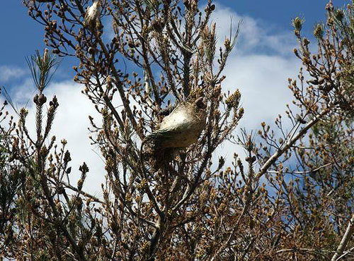Clicca per Ingrandire Sono diversi giorni che alcuni curiosi e direi ottimi osservatori della natura che percorrono la strada Macchia-Monte Sant’Angelo segnalano alla redazione di newsgargano.com la presenza di “strani” nidi su alcuni alberi di pino. Ovviamente non essendo esperti della materia, approfondiamo l’argomento rivolgendoci a Francesco Piemontese, agronomo, assegnista di ricerca all’Università degli studi di Foggia, facoltà di Agraria, per chiedere delucidazioni sull’argomento. “Quegli ‘strani’ nidi - dice - sono costruiti da larve di lepidottero (nome scientifico Thaumatopoea pityocampa ), meglio conosciute come processionaria del pino in quanto alla ripresa della loro attività trofica si muovono in fila a mo’ di processione. La loro presenza mette a rischio la vita delle conifere e non solo, anche l’uomo e tutti gli animali a sangue caldo, potrebbero andare incontro a seri problemi. Le larve trascorrono l'inverno all'interno di un nido sericeo, intorno a febbraio-marzo riprendono l'attività trofica e causano i danni maggiori alla chioma.