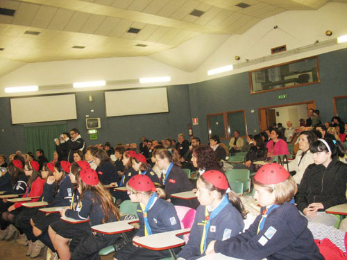 Una sala gremita in una domenica "difficile", altri importanti eventi in calendario non hanno impedito agli interessati a questa malattia sociale, l'epilessia, di riunirsi per ascoltare, riflettere, giocare e commuoversi. Di primo mattino fanno il loro ingresso trionfale un esercito di "coccinelle" scout col caratteristico e grazioso copricapo rosso e nero (foto 4), numerosi insegnanti consci che la giornata è soprattutto per la scuola e l'associazionismo, una folta schiera di famiglie ma anche semplici cittadini sensibili al problema e non ultimi "Gli Amici della Domenica", molti di loro infatti membri promotori e sostenitori dell'evento. Tutti seduti, allora, con occhi e orecchi spalancati in una giornata che si preannunciava fuori dal comune.