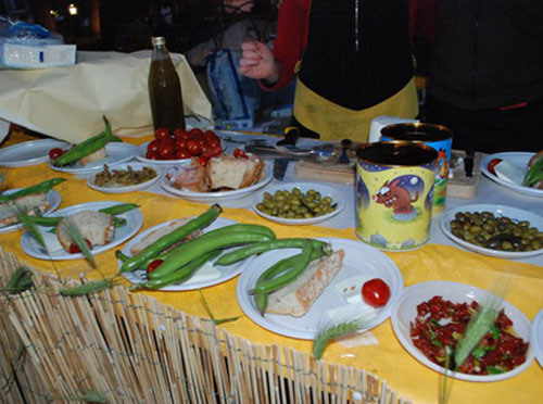 Bene così, comunque, anche perché se avessimo ricevuto la visita di viestani, vichesi e rodiani, avremmo dovuto rifornirci in corsa delle indispensabili vettovaglie. Le scorte, infatti, si sono esaurite nel giro di appena tre ore. Non c’è stata postazione - tre, distribuite in paese, con tre “offerte” diverse (basta scorrere le foto a corredo) allietate da tre gruppi musicali diversi, “Valida Idea”, “Street Band”, “Zobel & Co.” - che abbia portato a casa qualcosa. Pane (messo a disposizione dai forni locali), pomodori, fave, cacioricotta, pettole, “sponsali” e tutto il resto del companatico sono spariti nelle fauci di estimatori affamati, soddisfatti e compiaciuti.