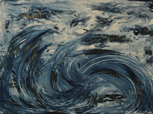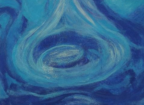 Fino al 3 giugno una delle sue creazioni più significative, “Onda” (foto 1 sotto) olio su tela, cm 80x60 (2009), sarà esposta alla Galleria d’Arte “Il Borgo” di Milano, in una esposizione Internazionale d’Arte Contemporanea. Mentre col suo originale “Acqua-Tempo-Vita” (foto 2), olio su tela, cm 40x60 (2010), nella triplice prospettiva dello stesso dipinto, è riuscita a realizzare una sorta di “Triplicazione in arte”, attraverso la sintesi di una goccia, l’abbozzo di una clessidra e l’attimo pulsante di un feto.