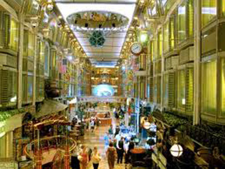 “Navigator of the Seas” e le sue gemelle della Classe Voyager “Mariner of the Seas” (foto del titolo e 1 sotto, l’interno; ndr) e “Voyager of the Seas” saranno le navi più grandi e sorprendenti nel Mare Nostrum in partenza dall’Italia. Quindici ponti dedicati alle attività ricreative e intrattenimenti vari, una pista di pattinaggio sul ghiaccio, una parete da arrampicata a sessanta metri sul livello del mare, un simulatore di golf o un campo da golf a nove buche, un campo regolamentare da pallacanestro, che si trasforma in campo da pallavolo e calcetto. Ricchissimi centri benessere, dove provare esclusivi trattamenti come l’agopuntura o lo sbiancamento dei denti, gallerie alte quattro piani, con bar, pasticcerie, caffè e negozi di tutti i tipi.