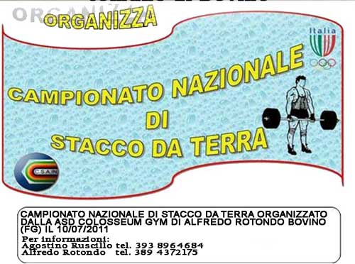 E' bastato poco e il delegato allo Sport del Comune di Bovino, Agostino Ruscillo, ha preso in seria considerazione la proposta della locale Asd Colosseum Gym, diretta dall'atleta e dirigente Alfredo Rotondo. E cioè: perché non provare a organizzare una manifestazione diversa da quelle organizzate finora? Perché non diffondere una disciplina sportiva alternativa, che veda coinvolto un notevole numero di praticanti, anche a Bovino? Si è arrivati così allo "Stacco da Terra"! “Finché il coach Alfredo Rotondo non me ne parlasse - dichiara l’assessore - non sapevo neppure cosa fosse questa disciplina sportiva nata da più di un decennio ma che si sta diffondendo velocemente, specie per chi voglia mostrarsi con un fisico tutto muscoli.