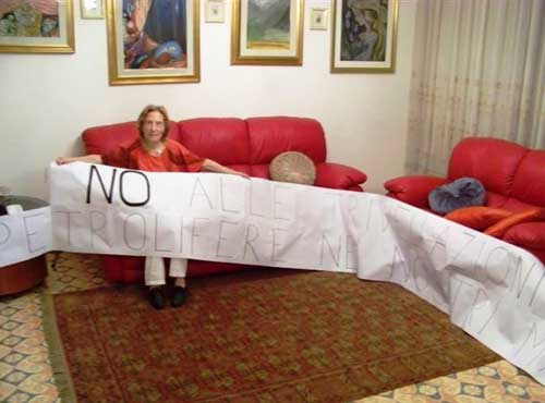 NB. Lo striscione cui Piemontese si riferisce nella Sua è quello sistemato ed esposto giovedì 18 agosto, alle 10, nei pressi del nuovo Water Front al lido San Cataldo di Lecce (foto 1 sotto) nel corso dell’iniziativa di sensibilizzazione civica “In difesa del mare della Puglia e delle coste del Salento” contro il rilascio da parte del Ministero dell'Ambiente e della Tutela del Territorio e del Mare delle autorizzazioni già richieste dalla compagnia petrolifera Northern Petroleum per le trivellazioni nel mare della Puglia e lungo le coste del Salento. In foto 2 lo stesso striscione (NO ALLE TRIVELLAZIONI PETROLIFERE NEI NOSTRI MARI) nell’abitazione della signora Luigia Valentina Mastrolia De Nunzio.