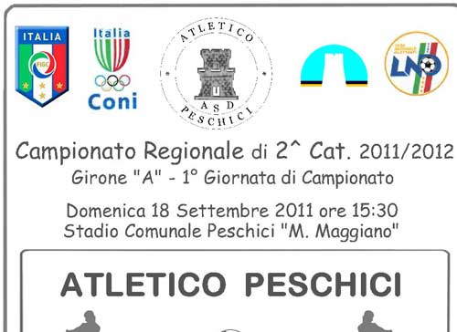 Clicca per Ingrandire Domani, domenica 18 settembre, debutto ufficiale dell’Atletico Peschici nel Campionato regionale di Seconda Categoria-Girone A contro l’Asd Troia. Fischio d’inizio alle 15.30 nello splendido e nuovissimo stadio intitolato a un amante dello sport scomparso tempo fa: Michele Maggiano. Sul rettangolo in fibra sintetica scenderà una squadra “volutamente” giovane guidata da mister Sante Lapomarda il cui imprinting dovrebbe essere ormai nel dna dei ragazzi.