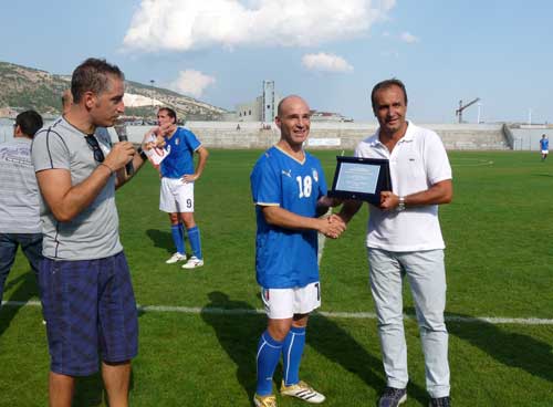 Momenti di forte emozione a inizio partita quando la famiglia del compianto Sergio Mischitelli ha ricevuto dal sindaco di San Giovanni Rotondo, Luigi Pompilio, una targa in ricordo di questa bellissima giornata. Ospite d’onore della manifestazione è stato l’allenatore di serie A Pasquale Marino, già alla guida del Foggia da dove si consacrò al grande calcio e prese lo slancio per una carriera che lo ha portato sulle panchine di Udinese e Parma, oltre che a essere uno fra gli allenatori più apprezzati nel panorama calcistico italiano. Anche l’ex tecnico dei rossoneri è stato premiato con una targa ricordo con segnata dal direttore amministrativo di Casa Sollievo Michele Giuliani, e ha ringraziato il pubblico per l’affetto e la stima nei suoi confronti. Giuseppe Dragano, organizzatore e promotore dell’iniziativa ha invece premiato l’arbitro Gianluca Paparesta.
