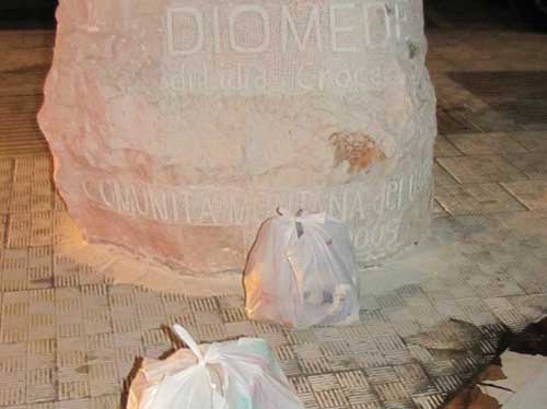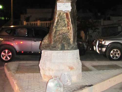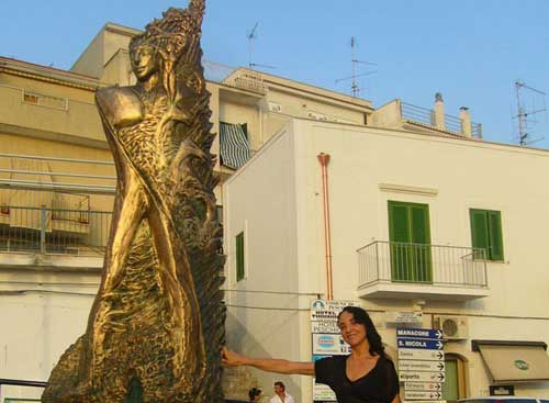 Stiamo parlando del “Diomede” (foto del titolo; ndr), scultura in bronzo di Lidia Croce (foto 1 sotto), che scelse fosse assegnata a Peschici, piuttosto che a Tremiti, il cui sindaco pure lo aveva richiesto alla Comunità Montana del Gargano. Rimosso già da tre collocazioni risultate inadeguate, il “Diomede”, figura dell’eroe greco che fondò tante città in Apulia, non ha ancora trovato la sistemazione che non lo esponga al pericolo di essere deturpato (foto 2-3-4) o, ancora peggio, trafugato.