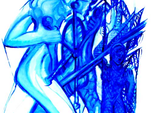 Non vogliamo contrastare la fantasia dell’osservatore, perché se noi l’abbiamo interpretata in due modi, altri più acuti di noi potrebbero aggiungerne ancora. La donnina è l’oggetto del desiderio del viaggio in cui si stanno cimentando il marinaio e la sua coscienza, una circe che lo ha chiamato in sogno, un sogno dietro il quale sta ora correndo, abbindolato dalle sue arti femminili? E la rete che la veste è la stessa in cui lui andrà a finire una volta raggiunta? O forse la donnina dalle forme adolescenziali è la fanciulla lasciata alla partenza sulla banchina del porto che a lui si offre nuda per ricordargli che lei sarà sempre lì ad attenderne il ritorno e continuare a offrirgli le sue grazie? E la rete il pegno del loro amore, la testimonianza del suo - di lei - essere legata a lui? Del comandamento “nontiscordardime” che rende la loro unione indissolubile? O anche, perché no, la sua - di lui stavolta - fuga da una trappola in cui non vuole più rimanere?