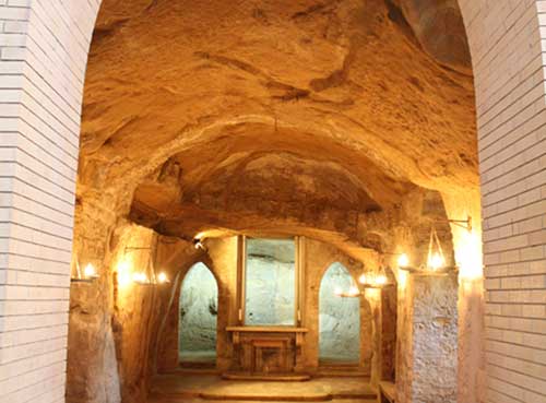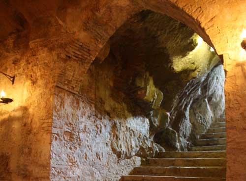 Il tempio di pietra sorge all’interno di un anfratto naturale. Si tratta di uno fra i luoghi di culto più importanti e antichi del Mezzogiorno d’Italia. Vi si accede attraverso la cosiddetta “scalinata sacra” (foto 3). All’interno si trovano iscrizioni latine e graffiti lasciati dai pellegrini che transitavano per raggiungere il più noto Santuario di San Michele che si trova a Monte Sant’Angelo e da lì la Terrasanta.