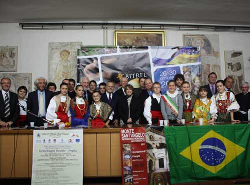 INTESA PUGLIA-BRASILE (Canale preferenziale di sviluppo e interscambio) = Puglia e Brasile lavoreranno insieme per sviluppare rapporti culturali e commerciali, implementare l’interscambio di prodotti e servizi e creare un canale preferenziale che valorizzi le destinazioni del turismo religioso sui due territori. Un lungo applauso, il 28 ottobre, ha salutato la ratifica del protocollo d’intesa sottoscritto a Monte Sant’Angelo, nell’auditorium del Santuario di San Michele, nell’ambito del gemellaggio tra la BitRel e Peregrinus, la Borsa del Turismo Religioso che si tiene ogni anno a San Paolo del Brasile all’interno di Expocatolica (foto 9).