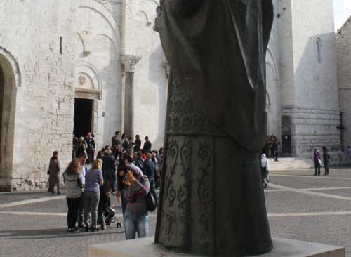 A bordo del loro pullman hanno percorso circa 450 chilometri, ammirando la Basilica di San Michele, i castelli di Bovino e Monte Sant’Angelo, il Duomo e il museo diocesano di Lucera, il Convento di San Matteo e la dimora spirituale del giovane Padre Pio a Serracapriola. I buyers sono rimasti abbagliati dalle policromie dei marmi e dalla bellezza dei Grifoni (foto 6) di Ascoli Satriano. Hanno avuto inoltre la possibilità di apprezzare l’eccellenza del patrimonio enogastronomico di Capitanata, espressa da produttori, trasformatori e chef coordinati da Slow Food, nei quattro momenti conviviali dedicati al cibo di qualità (foto 7). Per la prima volta, la BitRel ha varcato i confini della provincia di Foggia con la visita dei buyers al Santuario di San Nicola (foto 8) e alla Cattedrale di Bari.