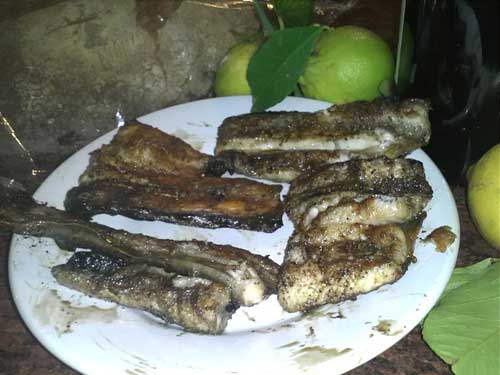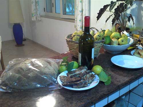 “E’ la seconda volta - mi dice l’amico - che faccio una bella pesca, in occasione di vostre visite. L’altra volta, una retata di oratine, questa volta quel che vedi nella cesta” (foto 8). “Vedrò di venire più spesso” ho risposto, e ci siamo accinti a brindare (foto 9) prima di gustare un bel piatto di bucatini quadrati conditi con cozze nere e vongole, sempre “varanine”, non di mare; tranci di capitone (foto 10) al fior di finocchio arrostiti alla brace, a cura della moglie, anche lei con segni di “donna di lago” nel dna, ereditato dai genitori e presente anche nei fratelli, tutti autentici pescatori lacustri; piccole anguille e ghiozzi fritti in olio extravergine di oliva dell’agro cagnanese; assaggi di caciocavallo - il tutto irrorato da Rosso Vivace di Castel del Monte; torta di melecotogne locali, prosecco di Villa Sandi-Crocetta del Montello (Tv), dono a noi da parte dei nostri amici-testimoni di nozze Michela e Claudio, che hanno già avuto modo di apprezzare i prodotti del nostro Varano e che potrebbero anche far parte dei degustatori della regina orata nei giorni natalizi!