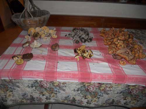 foto 1 - la tavola ricoperta dai funghi raccolti
