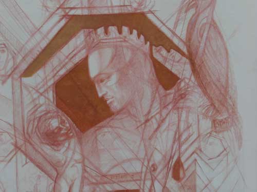 Il critico e docente di “Storia dell’arte moderna” Gaetano Mongelli (Università di Bari) riferirà sui più recenti studi sulla cantieristica di Castel Del Monte. L’artista figurativa Lidia Croce esporrà e illustrerà il dipinto che ha dedicato a “Federico II architetto” (foto del titolo, part.; in PERIODICI la tela intera; ndr). La parola e l’immagine si sono alleate in un duetto ideale per onorare la figura del “Puer Apuliae” che ha legato il proprio nome a un’opera architettonica immortale quale Castel del Monte. Per il blog culturale “Uriatinon”, interverrà Pietro Saggese. La serata è a ingresso libero.