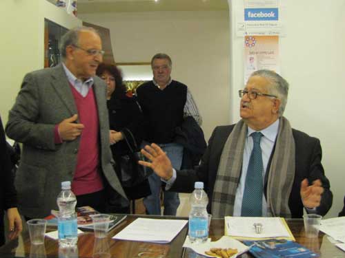 Clicca per Ingrandire Domenica scorsa, 27 novembre, a Rodi Garganico, nell’accogliente saletta del “Caffè-Pasticceria Rodi” in Corso Madonna della Libera (luogo di ritrovo di operatori culturali e artisti), nell’ambito della rassegna “Caffè Letterario”, si è svolto l’evento “Apologia di Federico II di Svevia: Dio in otto lati” organizzato dalla poetessa Rosanna Maria Santoro (foto 1 sotto, a dx; ndr), vice-caporedattore della nuova rivista di letteratura rosa “RomanceMagazine”, col patrocinio del Centro Culturale “Uriatinon” (creatura del compianto Filippo Fiorentino), ricordato dall’attuale presidente, Pietro Saggese (foto 2, a sx).