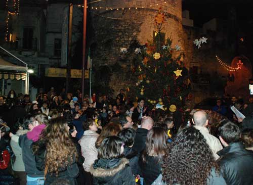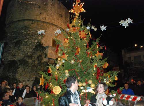 Clicca per Ingrandire Dieci… 9… 8… 7… 6… 5… 4… 3… 2… 1… 0…! E l’albero lanciò al cielo il suo augurio (foto del titolo; ndr), tempestò di scintille il firmamento, proiettò verso le stelle la gioia di vivere (anche in tempi melanconici) di tanti bimbi e adulti richiamati dalla cerimonia di apertura del Secondo Festival del Natale Garganico svolta domenica 4 a Peschici (foto 1 sotto). Tanti commenti (buoni e cattivi), tante critiche (costruttive e negative), tanti mugugni (giustificati e gratuiti)… ma tutto serve per migliorare il prodotto e smussarne gli angoli più aguzzi nelle prossime edizioni.