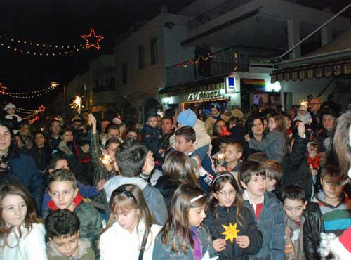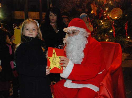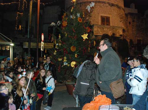 Momento-clou, l’accensione guidata dell’Albero (foto 3) allestito con originalità secondo un’idea del Comitato “Peschici Eventi” (foto 4), affiliato all’Associazione “Punto di Stella”, e delle “scintille” (foto 5) distribuite in gran numero ai bambini presenti coincisa con l’arrivo di Babbo Natale (foto 6) - impersonato dal presidente del Comitato - che ha distribuito dolciumi e caramelle a grandi e piccini, lasciandosi fotografare per la gioia dei più piccoli… e di qualche adulto, al suono di nenie e canzoni natalizie lanciate nell’etere dalle strumentazioni di Luciano Vecera, gradita e squisita presenza.