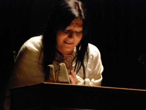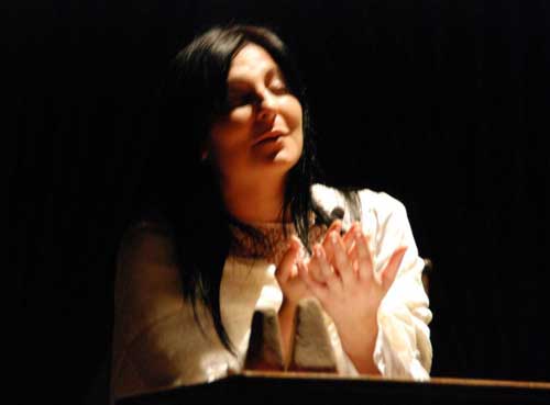 Lucida, conscia delle difficoltà che il testo le ha creato sin dalla prima lettura, partecipe di un dramma universale, ha lavorato di bulino con perizia muovendosi agilmente fra i diversi toni e le variegate sfumature che il poemetto della Merini impone. Fredda nel momento della razionalità spirituale, appassionata negli istanti di una condizione che va deteriorandosi, emotivamente trascinata nei gorghi di una storia che si va consumando mentre ha già segnato la sua immortalità pur apparendo ormai finita, intimorita negli attimi di sbandamento meramente umano, esultante nella consapevolezza di aver donato al mondo un “re dei re”: tutto ciò è stata la protagonista del monologo.