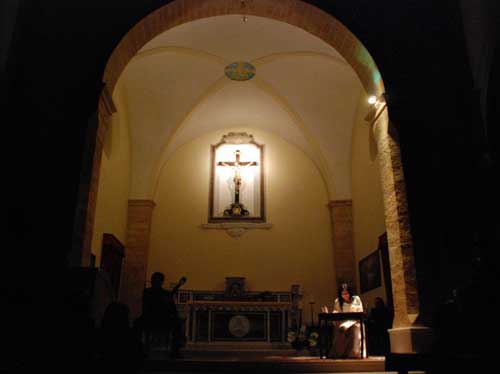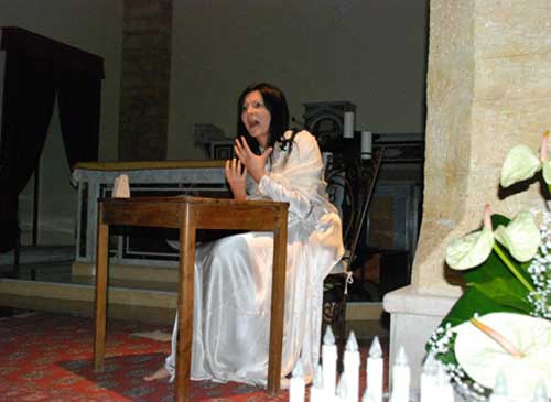 Clicca per Ingrandire A un anno esatto di distanza, il Magnificat di Alda Merini fa nuovamente centro. Riproposto l’11 scorso dall’Associazione “Punto di Stella” nell’ambito del 2° Festival del Natale Garganico e nella identica location del 2010 - la Chiesa Madre di Peschici, la più congeniale delle sedi - ha riproposto le stesse emozioni vissute dodici mesi fa. L’intensa e pregna di pathos interpretazione dell’attrice Camilla Tavaglione personificando la Vergine Maria, analizzata fin nell’intimo lungo tutto il suo percorso di gioie, perplessità e dolore, dall’Annunciazione alla Deposizione passando attraverso la tragedia della Crocifissione, ha toccato nel profondo il cuore degli spettatori.