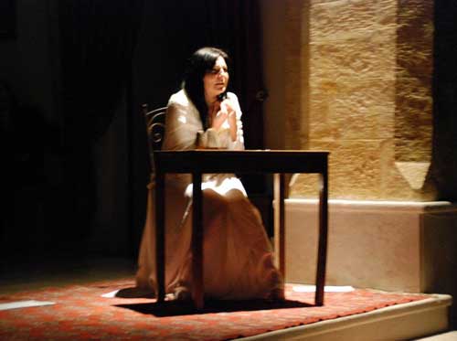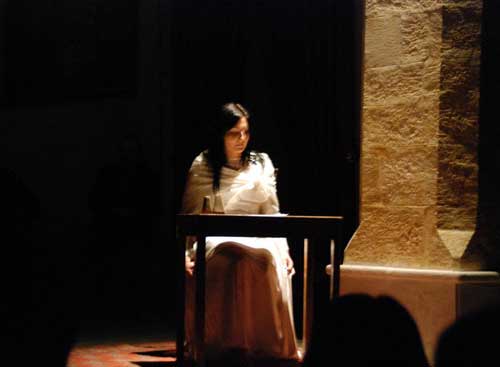 L’opera della Merini, imperniata su una delle figure più enigmatiche della cristianità, che ha appassionato scettici e credenti di tutti i tempi, è stata plasmata e rinnovata nella gestualità, nella pura parte recitativa, nella proposizione di stati d’animo che affondano e vagano fra le pieghe di ciascuno degli umani sentimenti, dalla capacità interpretativa di Camilla Tavaglione, parte per aver amato da subito il contenuto, parte per averlo metabolizzato fin nei più segreti recessi della sua anima, molto per la felicità di rappresentare tre momenti-clou della Storia dell’Uomo e vincere una sfida difficilissima.