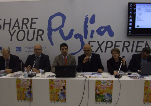Clicca per Ingrandire E' stata presentata alla Borsa Internazionale del Turismo di Milano, nello stand della Regione Puglia, la “Settimana del Sole” di orienteering valevole per i campionati italiani 2012, in programma in Puglia, sul Gargano, dal 1° al 5 settembre. Gli onori di casa sono stati fatti da Giuseppe Ceresa, presente in quanto presidente F.I.S.O. Lombardia. Il presidente nazionale Sergio Grifoni ha sottolineato il crescente peso specifico della Puglia e in particolare del Gargano, terra ideale per la pratica della corsa orientamento.