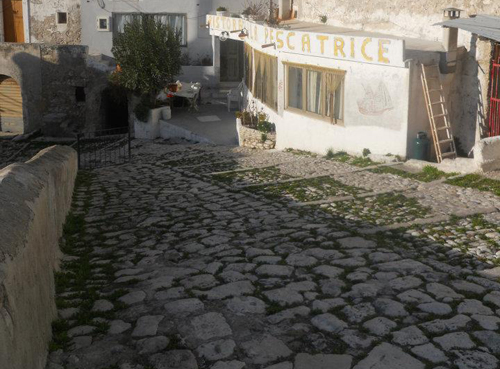 Clicca per Ingrandire 1° marzo ore 15.30, sono passate poche ore dalla ferale notizia: Lucio Dalla ci ha lasciato. Mi precipito con decisione nel Centro Storico di Peschici. Lo percorro tutto e quasi sul limitare della Rupe imbocco Via Marina (foto 1 sotto; ndr). Pochi metri in discesa e al numero 20 ecco l'insegna: Ristorante “La Pescatrice” (foto 2-3). Lei mi aspetta. “Lei”, la titolare, è la signora Filomena Salcuni, “Mamainë” per tutti (foto del titolo). Entro nel locale e su di me si riversa una presenza inconfondibile: tutto, in questi ambienti, ricorda Lucio Dalla (foto 4-5-6). Freno a stento l'emozione ed entro subito in argomento.