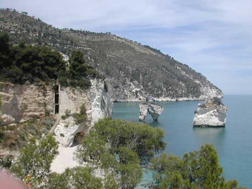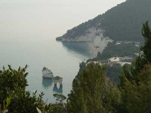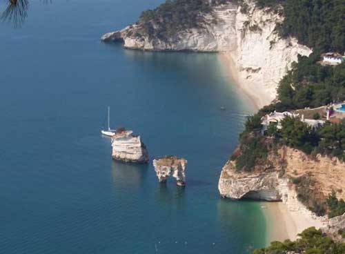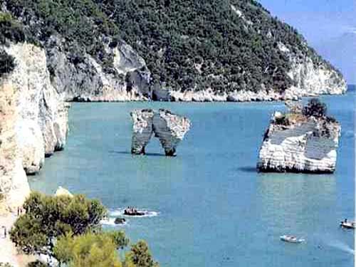 Clicca per Ingrandire Sos: gli splendidi e maestosi Faraglioni di Mattinata (foto del titolo; ndr) sono a serio rischio crollo. L’allarme giunge direttamente dal sindaco Lucio Roberto Prencipe che lo scorso 16 marzo ha inoltrato una lettera di sollecito al presidente della Regione Puglia, Nichi Vendola, e all’assessore regionale alle Opere Pubbliche, Fabiano Amati, al fine di sbloccare i tre milioni di euro destinati dal Cipe (Comitato Interministeriale Programmazione Economica; ndr). Dunque, a rischio di sbriciolamento è Baia dei Mergoli (o dei Faraglioni – foto 1 sotto), tratto di costa di particolare bellezza e importanza a livello mondiale che si estende fra Mattinata e Vignanotica, e si caratterizza per la presenza delle alte scogliere, dei due Faraglioni (residui di roccia calcarea lavorati dalla natura), delle foreste di pini e della spiaggia di ciottoli bianchi. Emblema del territorio costiero del Gargano (assieme al Pizzomunno di Vieste), è uno dei posti della Puglia più rinomati e conosciuti (qui Bollywood ci ha girato il famosissimo ‘House Full”). Ma, anni di erosione naturale e pressione antropica, mettono a repentaglio il futuro di questo angolo di paradiso.